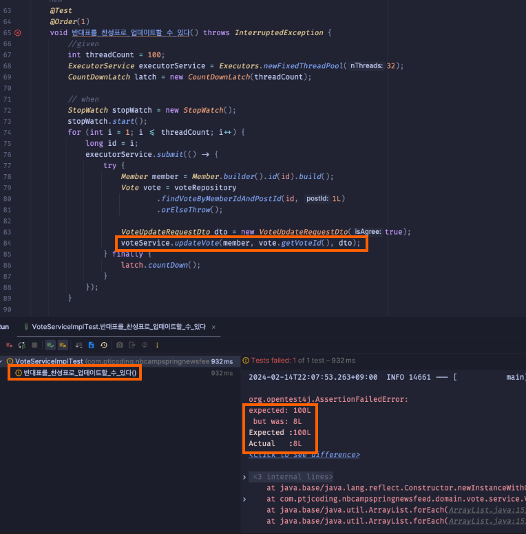 멀티 스레드 환경에서 다수의 클라이언트 요청이 동시에 하나의 글에 투표를 진행하면 정상적으로 동작할 수 있을까?