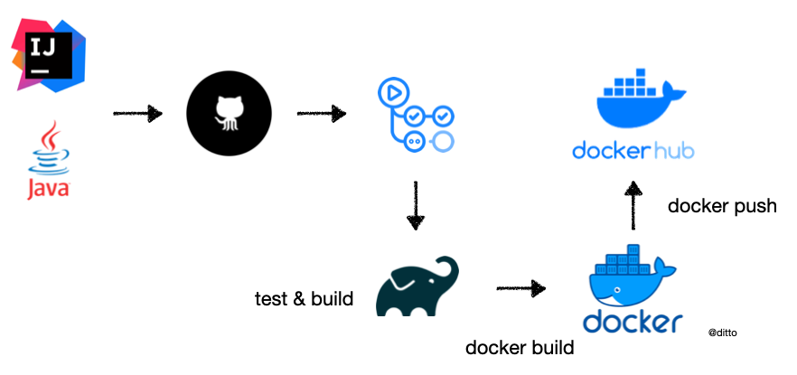 코드 푸시부터 도커 이미지를 빌드하는 프로세스를 먼저 살펴보면 다음과 같다.