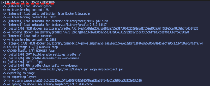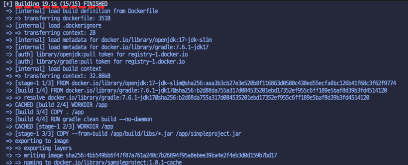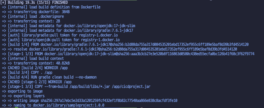 명령어를 입력하고 이미지 빌드를 수행하면 다음과 같은 결과를 확인할 수 있다.